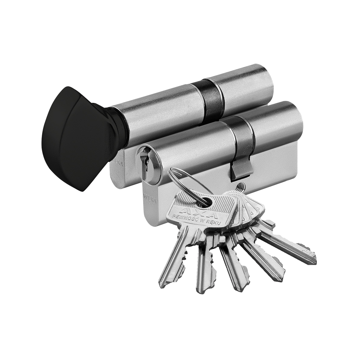 Set double profile cylinder includes: double euro cylinder, euro thumbturn cylinder, 5 keys, security card, 2 mounting screws
