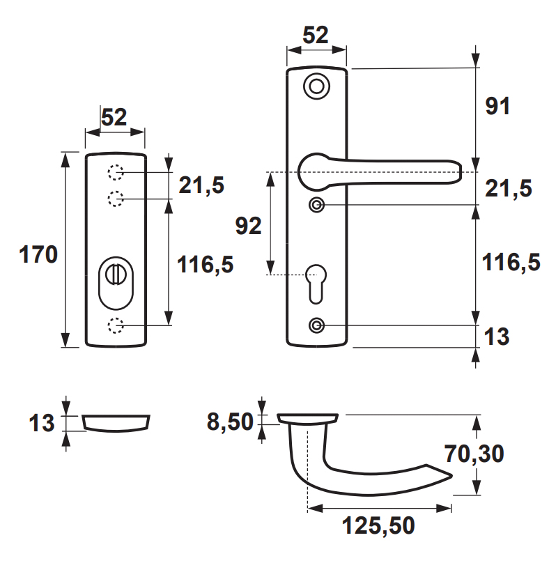 Thickness Security backplate/rosette outside 13 mm