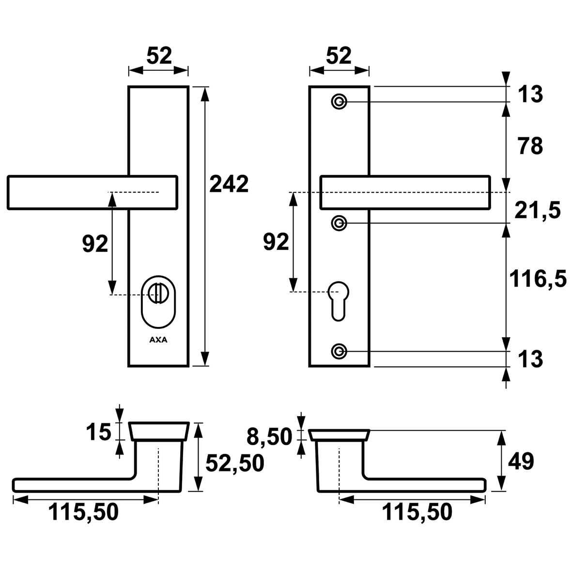 • Handle in the range of security class 4, which is very high resistance to burglary
